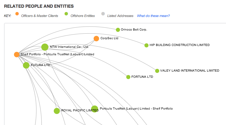 An individual or an offshore corporation (also referred to as an “entity”) would be a “node” in the network, while a relationship between them would be referred to as an “edge”. A node, depicted as a dot, may have several edges coming out of it, while an edge – a line – would always connect only two nodes.