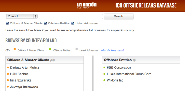 ICIJ has created a search tool that makes it possible for everyone to explore the database, independently on his or her technical skills. For example, it is possible to search the database by country: